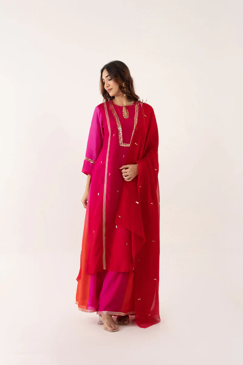 RED KALI KURTA SET WITH FIDA DUPATTA