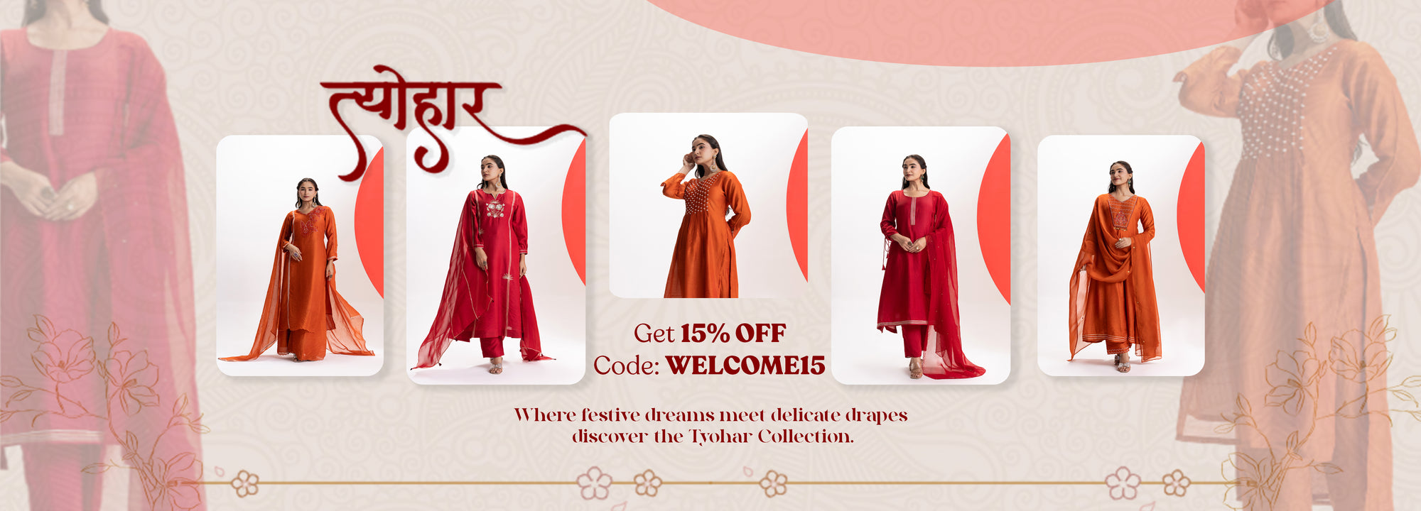 TANIYA ATMARAMANI ORANGE YOKE KALIKURTA SET