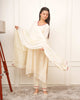 This elegant suit set is crafted in luxurious Viscose Bemberg Muslin, featuring a graceful silhouette adorned with delicate hand-finished lace. The rich fabric and timeless design make it a perfect choice for special occasions.